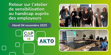 Le mardi 04 novembre, Cap emploi 56 a eu le plaisir d’accueillir dans ses locaux de Vannes dix employeurs engagés dans une démarche d’ouverture et d’inclusion. En collaboration avec AKTO, opérateur de compétences (OPCO) spécialiste de l’accompagnement des entreprises dans leurs projets RH, nous avons proposé une matinée…