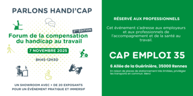 Le vendredi 7 novembre 2025 de 8h45 à 12h30 dans les locaux de Cap emploi 35 à Rennes.