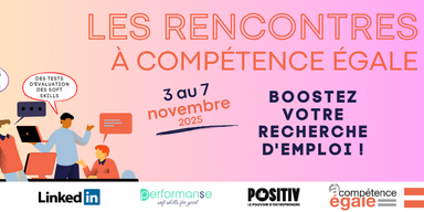 Du 3 au 7 novembre 2025, A Compétence Egale vous donne rendez-vous en ligne pour une semaine 100% dédiée à votre recherche d’emploi.