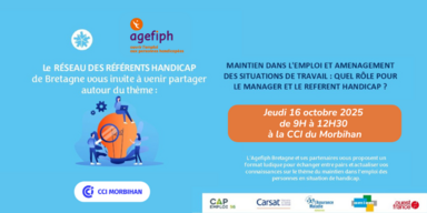 Le Réseau des Référents Handicap de Bretagne, animé par l’Agefiph, donne rendez-vous aux professionnels le jeudi 16 octobre 2025 à la CCI du Morbihan.