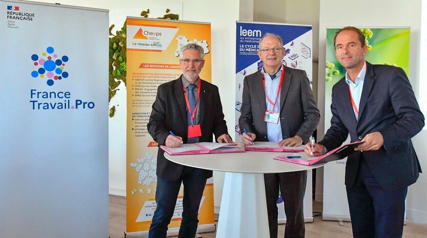 Le mercredi 1er octobre 2025, France Travail et Cheops signent un accord cadre avec le Leem (Les Entreprises du Médicament).