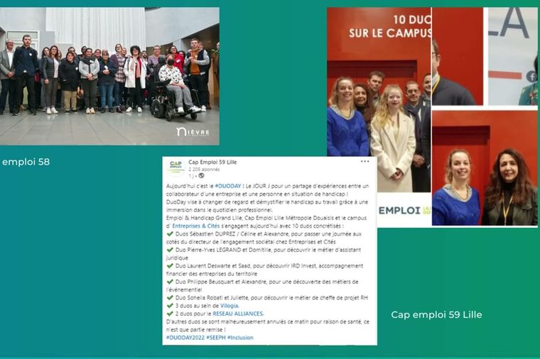 La nouvelle édition de la Semaine Européenne pour l’Emploi des Personnes Handicapées 2022 (SEEPH) est marquée par l’aboutissement du rapprochement entre Pôle emploi et Cap emploi : les conseillers Pôle emploi et Cap emploi accompagnent dorénavant les demandeurs d’emploi en situation de handicap dans un lieu unique, leur agence Pôle emploi. Les deux réseaux proposent une offre de services intégrée à destination des demandeurs d’emploi et des employeurs. Pour cette Semaine de mobilisation, Pôle emploi et Cap emploi ont organisé ensemble de nombreuses actions concrètes pour faciliter l’accès à l’emploi des personnes en situation de handicap dont l'opération Duoday.