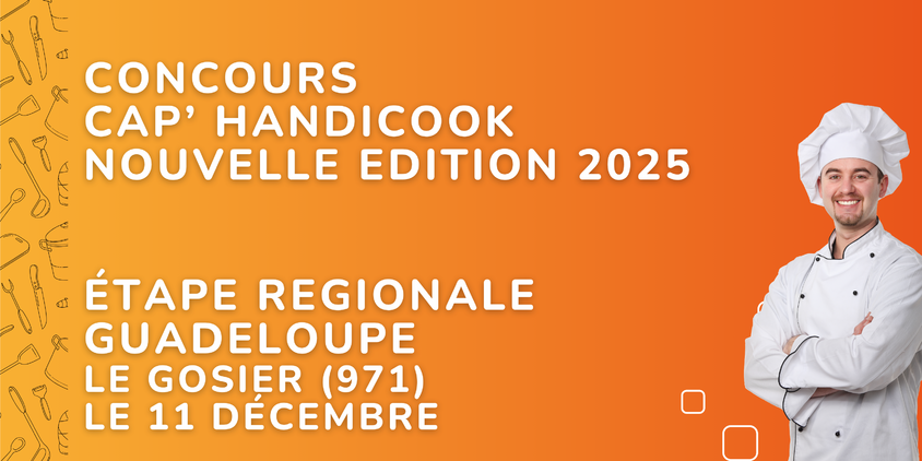 Pour la nouvelle édition 2025 du grand concours culinaire Cap'Handicook, l’étape régionale Guadeloupe aura lieu à Le Gosier (971) le 11 décembre. Vous êtes passionné et expérimenté dans ce domaine et vous souhaitez mettre en avant vos compétences professionnelles? Vous aimez les challenges et relever de nouveaux défis ? Alors inscrivez-vous vite au concours à destination des personnes en situation de handicap.